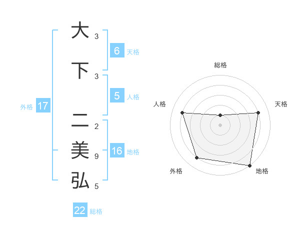 大下 二美弘さんを姓名の画数から五運を鑑定