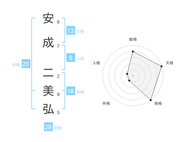 安成 二美弘さんを姓名の画数から五運を鑑定