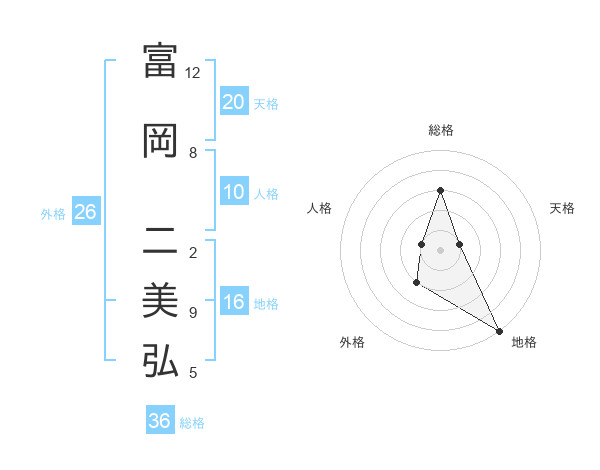 富岡 二美弘さんを姓名の画数から五運を鑑定