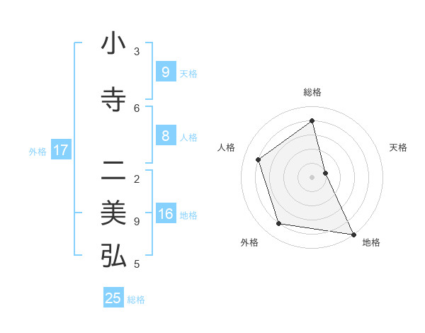 小寺 二美弘さんを姓名の画数から五運を鑑定