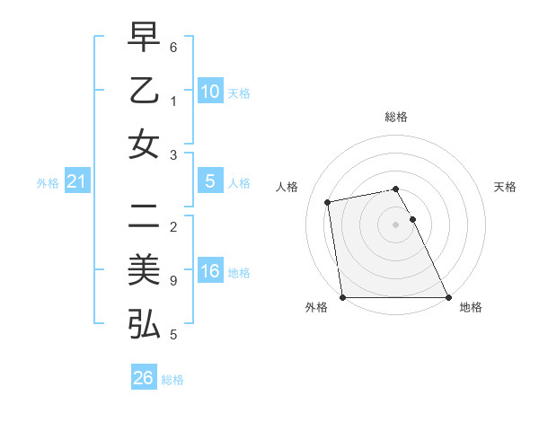 早乙女 二美弘さんを姓名の画数から五運を鑑定