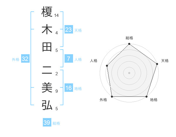 榎木田 二美弘さんの総格は39画の5点!