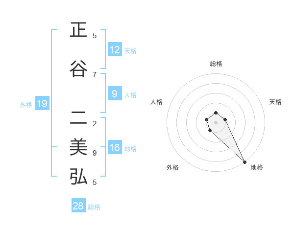 正谷 二美弘さんを姓名の画数から五運を鑑定