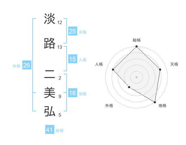 淡路 二美弘さんを姓名の画数から五運を鑑定