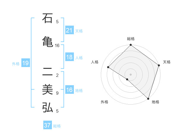 石亀 二美弘さんの総格は37画の5点!