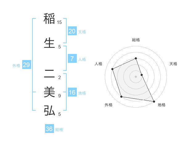 稲生 二美弘さんを姓名の画数から五運を鑑定