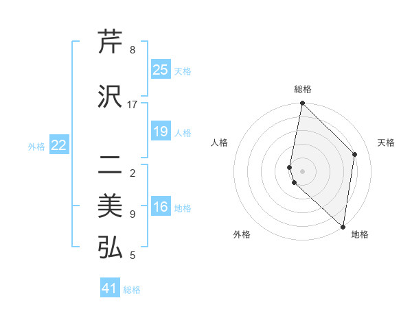 芹沢 二美弘さんの総格は41画の5点!
