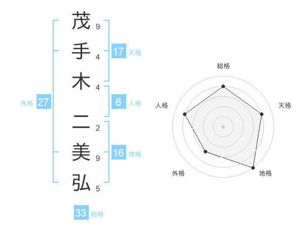 茂手木 二美弘さんを姓名の画数から五運を鑑定