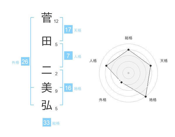 菅田 二美弘さんの天格は17画の4点!