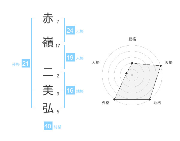 赤嶺 二美弘さんの外格は21画の5点