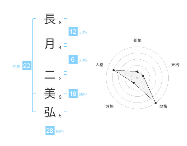 長月 二美弘さんを姓名の画数から五運を鑑定