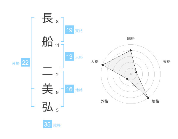 長船 二美弘さんの総格は35画の4点!