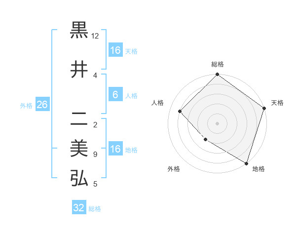 黒井 二美弘さんの天格は16画の5点!