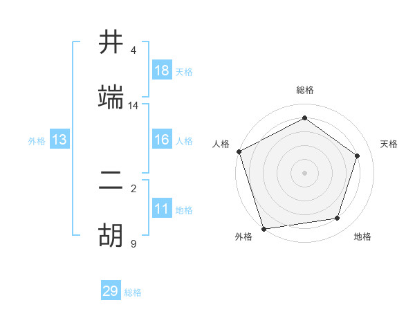 井端 二胡さんの総格は29画の4点!