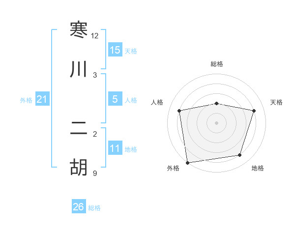 寒川 二胡さんを姓名の画数から五運を鑑定