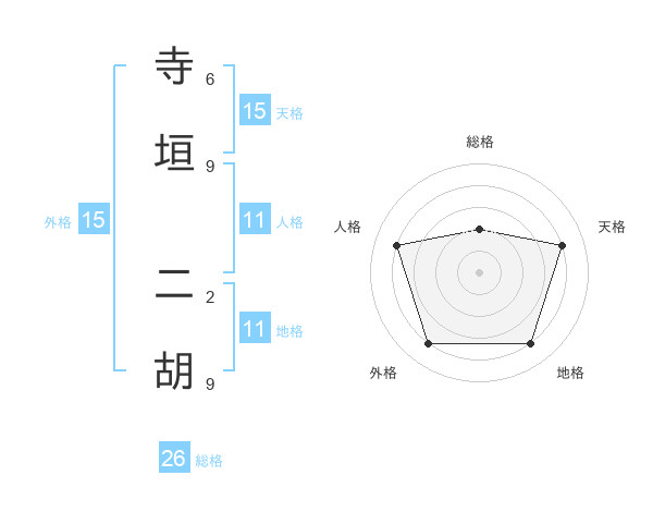 寺垣 二胡さんを姓名の画数から五運を鑑定
