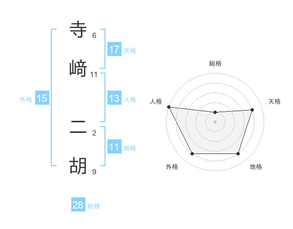 寺﨑 二胡さんを姓名の画数から五運を鑑定