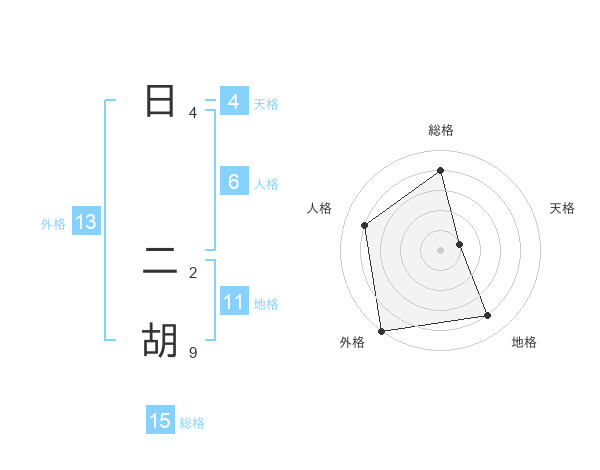日 二胡さんの外格は13画の5点!
