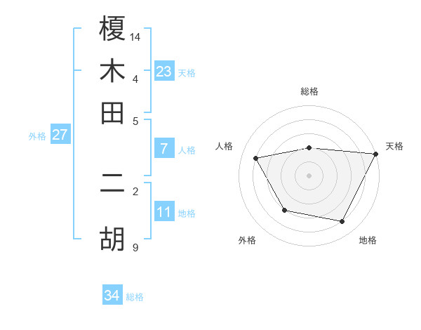 榎木田 二胡さんを姓名の画数から五運を鑑定