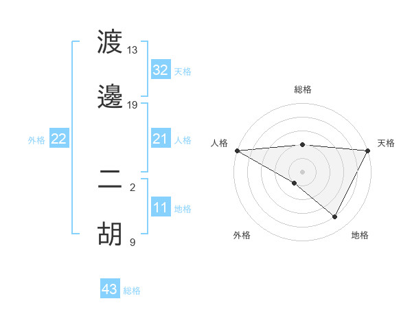 渡邊 二胡さんの外格は22画の1点!