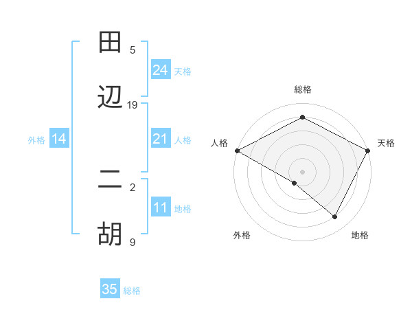 田辺 二胡さんの天格は24画の5点!