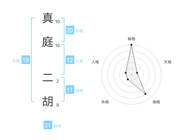 真庭 二胡さんの総格は31画の5点!