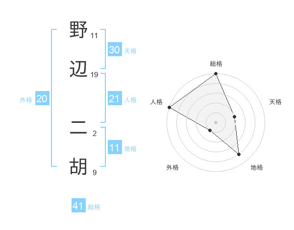 野辺 二胡さんの総格は41画の5点!