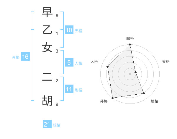早乙女 二胡さんを姓名の画数から五運を鑑定