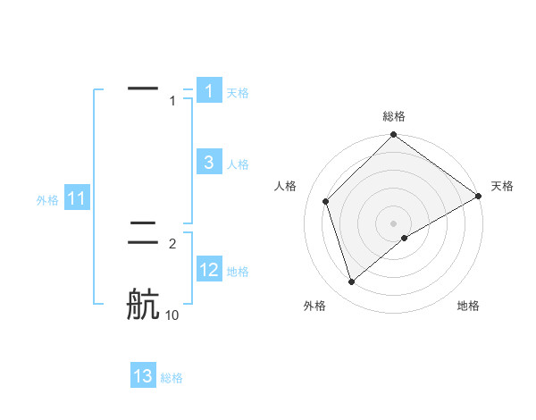 一 二航さんの総格は13画の5点!