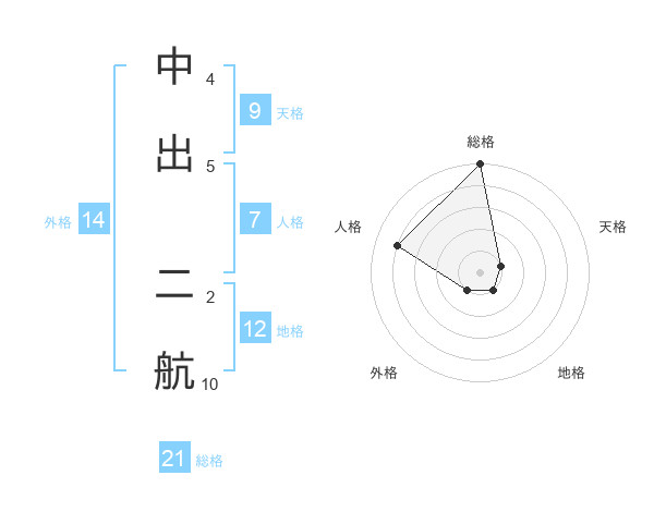 中出 二航さんの総格は21画の5点!