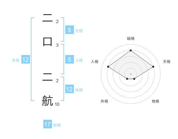 二口 二航さんを姓名の画数から五運を鑑定