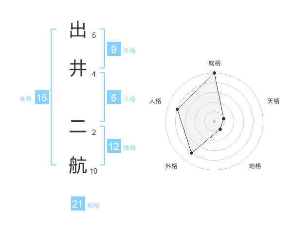 出井 二航さんの総格は21画の5点!