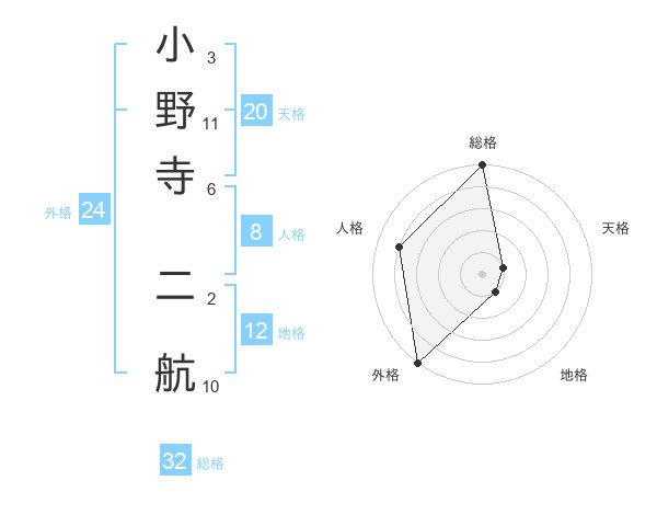 小野寺 二航さんを姓名の画数から五運を鑑定