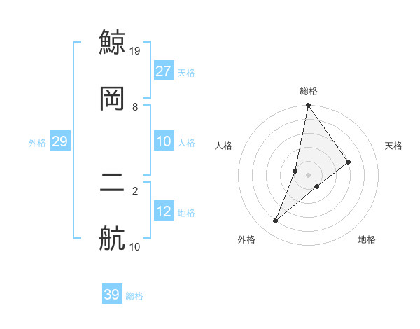 鯨岡 二航さんの総格は39画の5点!