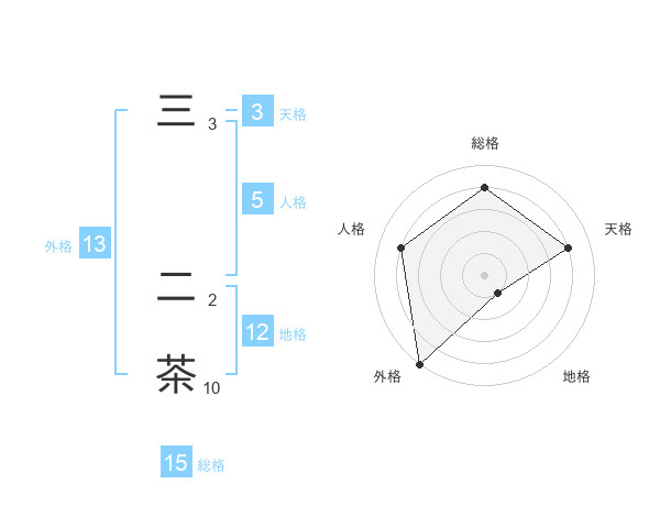 三 二茶さんの総格は15画の4点!