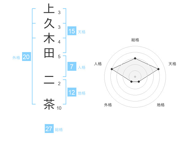 上久木田 二茶さんを姓名の画数から五運を鑑定