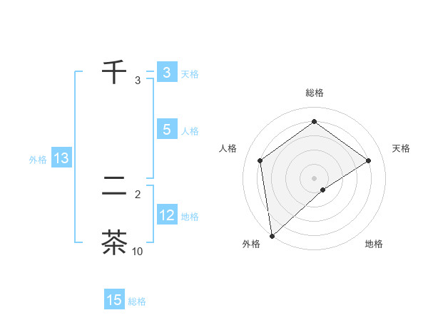 千 二茶さんの外格は13画の5点!