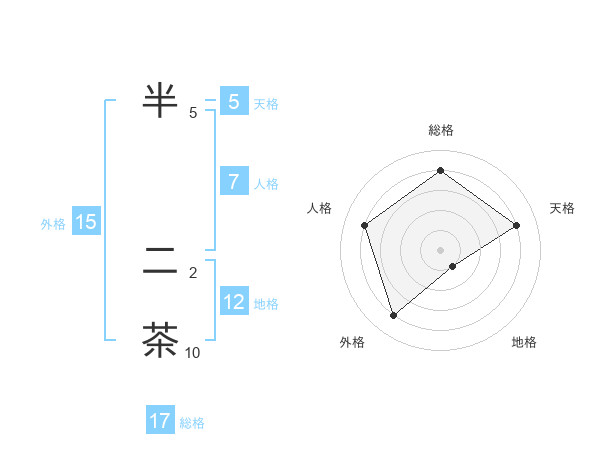 半 二茶さんの総格は17画の4点!