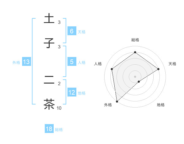 土子 二茶さんの総格は18画の4点!