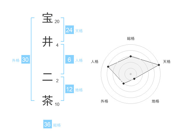 宝井 二茶さんの外格は30画の2点!