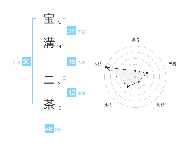 宝溝 二茶さんの総格は46画の1点!