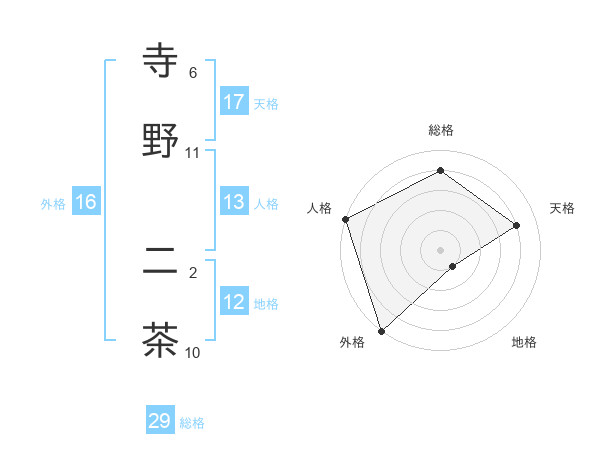 寺野 二茶さんを姓名の画数から五運を鑑定