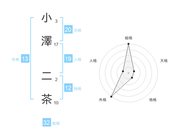 小澤 二茶さんを姓名の画数から五運を鑑定
