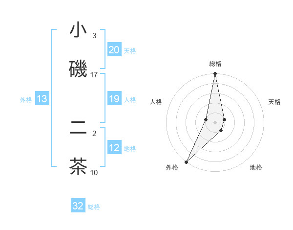 小磯 二茶さんの総格は32画の5点!