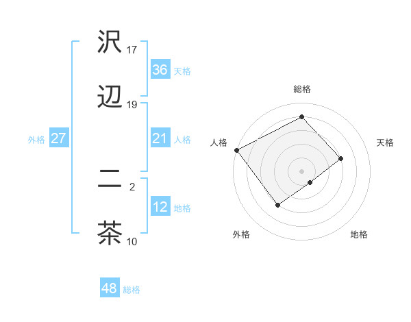沢辺 二茶さんを姓名の画数から五運を鑑定