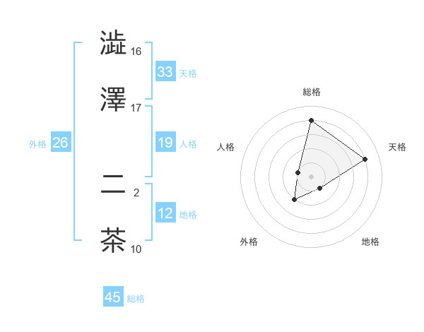 澁澤 二茶さんの総格は45画の4点!