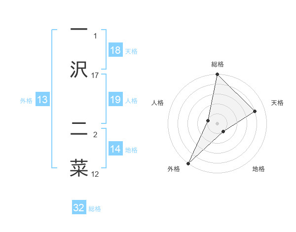 一沢 二菜さんの外格は13画の5点!
