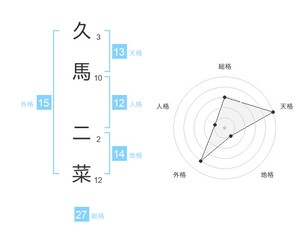久馬 二菜さんを姓名の画数から五運を鑑定