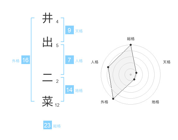 井出 二菜さんの総格は23画の5点!