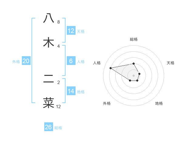 八木 二菜さんの総格は26画の2点!